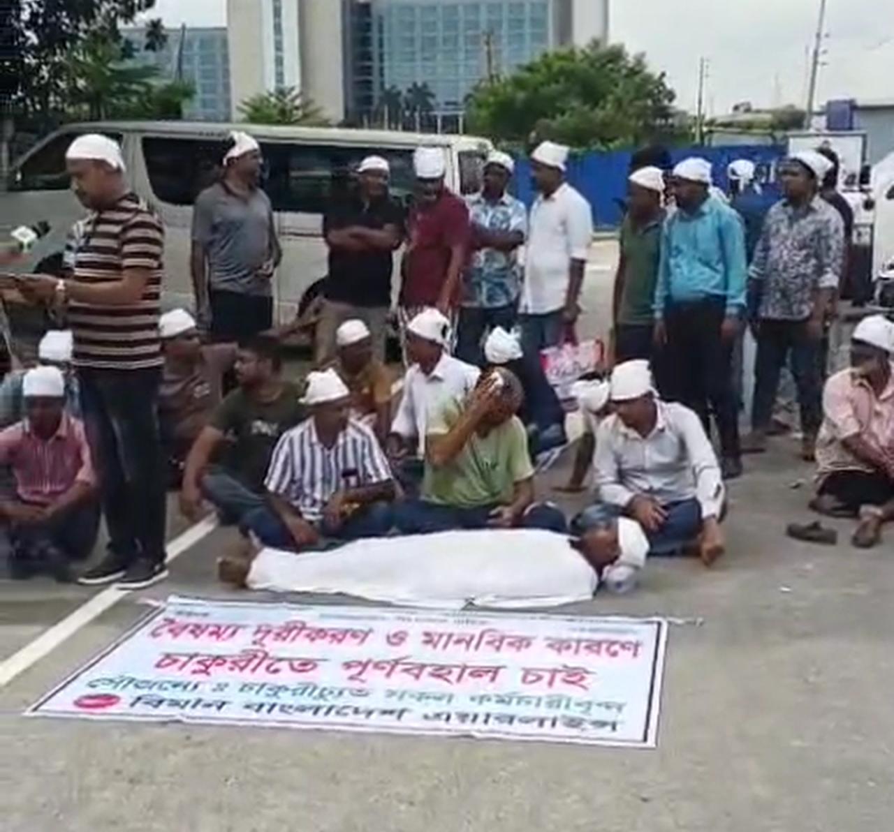 চাকরিচ্যুত কর্মীদের বিক্ষোভ, কঠোর অবস্থানে বিমান