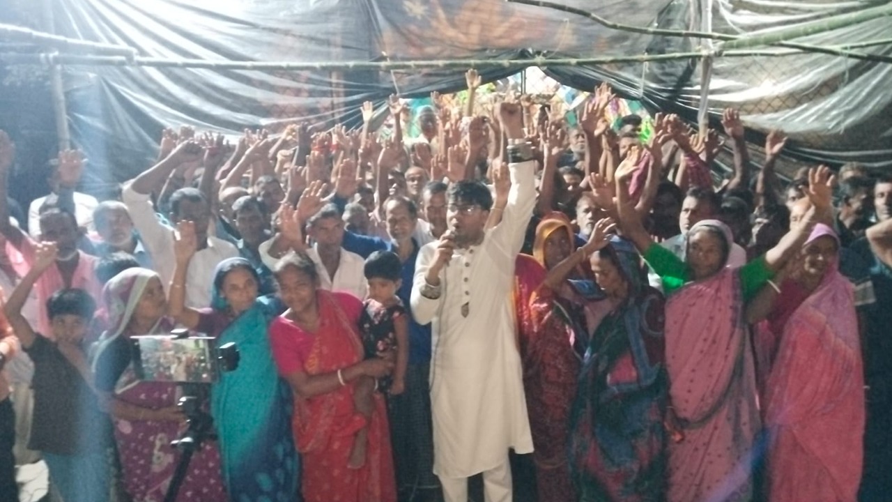 অনুষ্ঠানে হিন্দু সম্প্রদায়ের চার শতাধিক নারী-পুরুষ উপস্থিত ছিলেন। এ সময় তারা স্লোগান দেন, “হিন্দু-মুসলমান ভাই ভাই, ধানের শীষে ভোট চাই।”