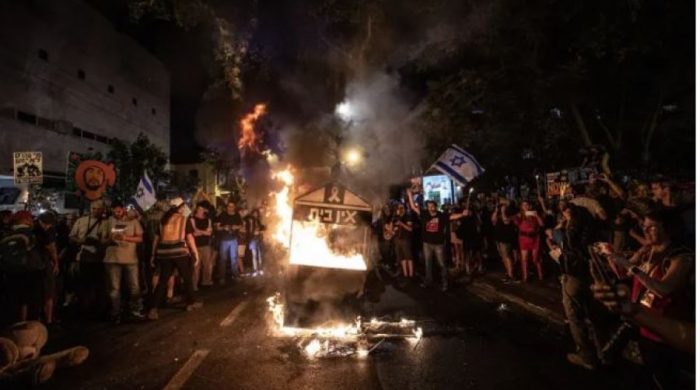 ইসরায়েলের প্রধানমন্ত্রী বেঞ্জামিন নেতানিয়াহু সরকারের বিরুদ্ধে বিক্ষোভে অংশ নিয়েছে অন্তত দেড় লাখ ইসরায়েলি। শনিবার (২২ জুন) তেল আবিবে নেতানিয়াহুর লিকুদ পার্টির সদর দফতরের বাইরে জাতীয় পতাকা হাতে বিক্ষোভে অংশ নেন